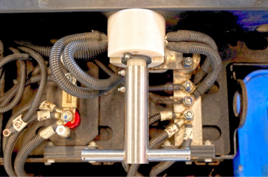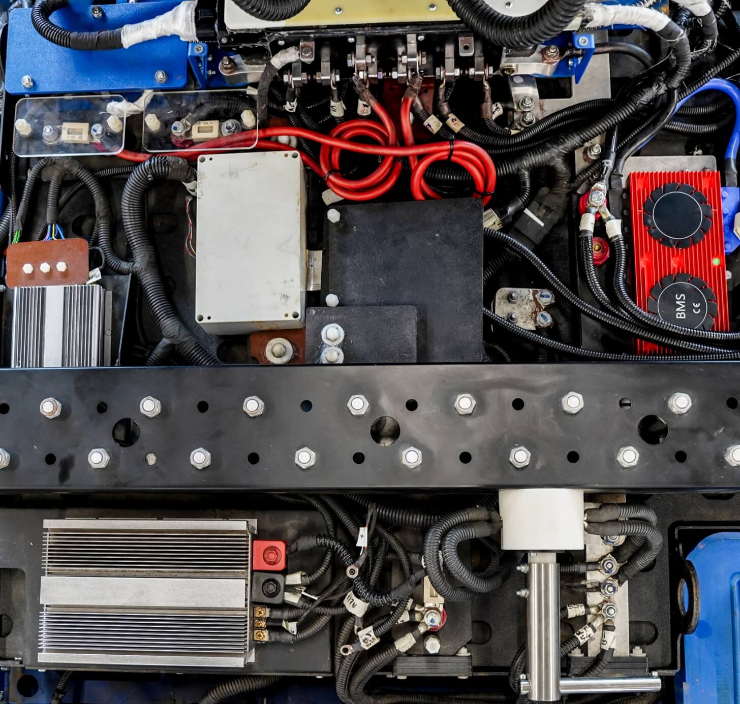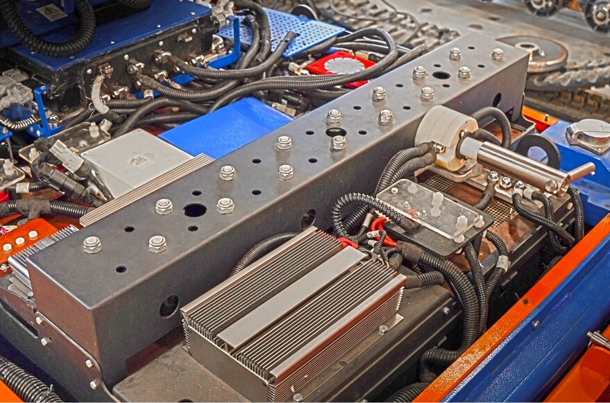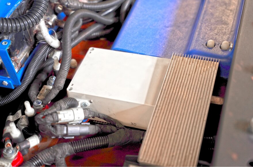 The DC/DC converter provides 12V power lines from the 48V battery, used to power 12V equipment installed on the machine.